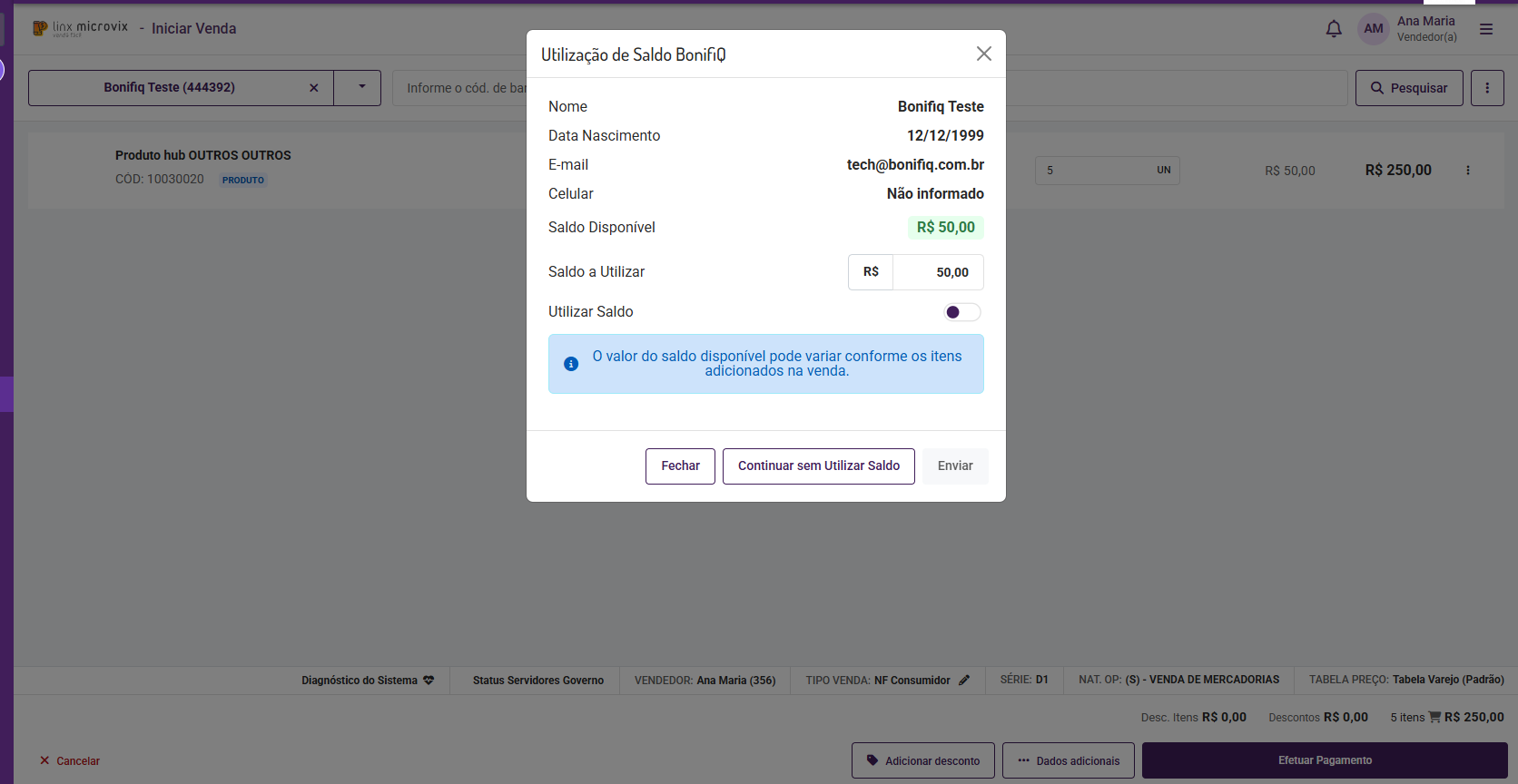 É possível ativar o pin para o resgate no cashback, o resgate só acontece após informado o pin correto. Para ativar o pin é na mesma página onde é gerada a chave de integração. https://app.bonifiq.com.br/integration/linxfidelity