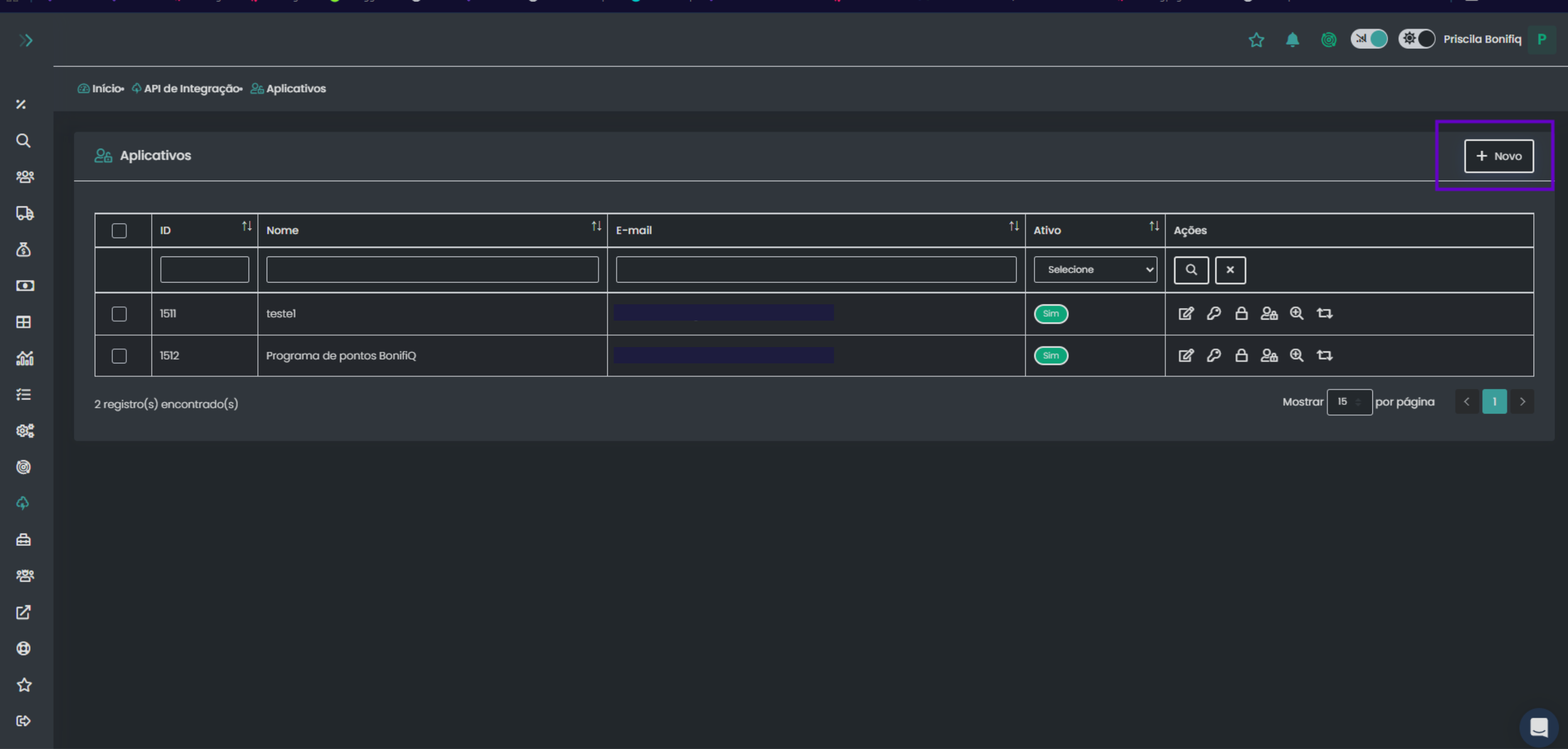 Acesse o painel administrativo da Agile > API de Integração > Aplicativos > Novo