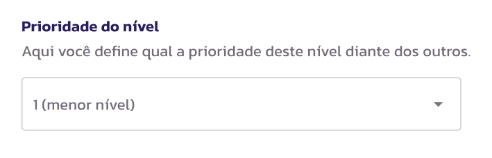 - Exclusividade: O sistema não permite que dois níveis tenham o mesmo número de prioridade. Isso garante que a jornada do afiliado seja linear e clara. Ao selecionar uma prioridade que já está em uso, as outras serão remanejadas adequadamente e automaticamente.